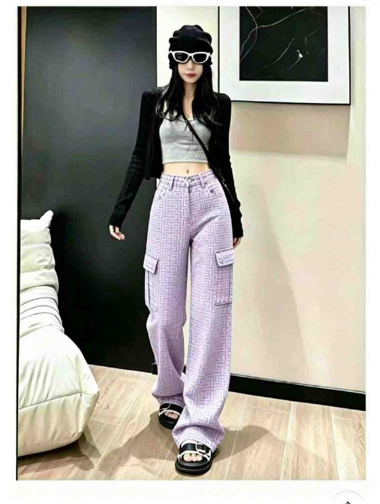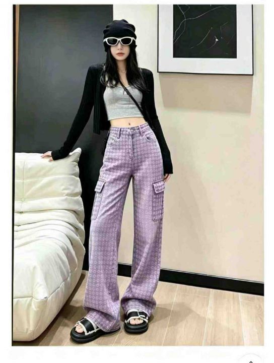 高街迷宫格阔腿牛仔裤女新款显瘦ins潮直筒工装拖地裤369条全清12.8元,码数...