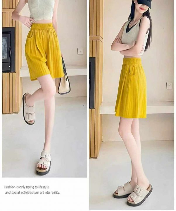夏季新款直筒高腰清凉五分肌理感冰丝褶皱宽松休闲短裤,独立包装,码数S--XL码, 500件左右,全清3.8元超低价秒杀!分货加一!