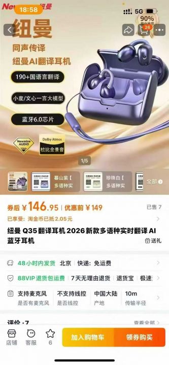 品牌纽曼翻译蓝牙耳机到货 1500 个,一箱 220 个...