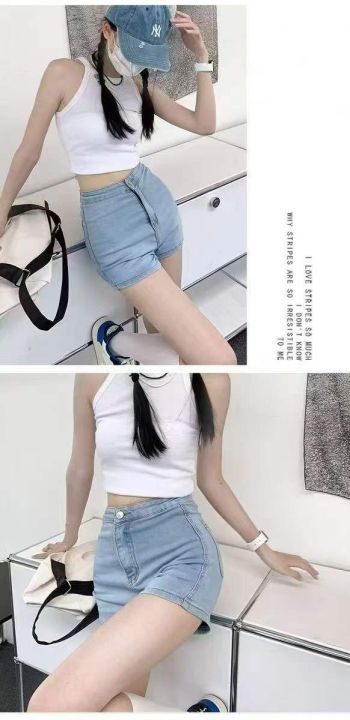 夏季新款高腰辣妹性感弹力显瘦洗水棉牛仔短裤,独立包...