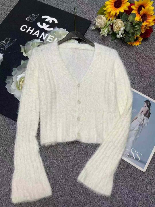 捡漏款,春季新款仿水貂毛V领单排扣针织毛衣开衫,独立包装,均码面料软糯舒适弹力大,50件左右,全清7.9元超低价秒杀!