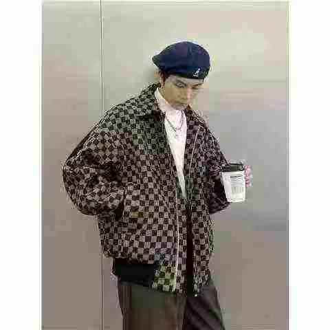 棋盘格外套男春秋季bf潮牌宽松炸街上衣日系复古休闲痞帅工装夹克大版型宽松外套,独立包装,码数M--XXL,总数量260左右,分货➕1
