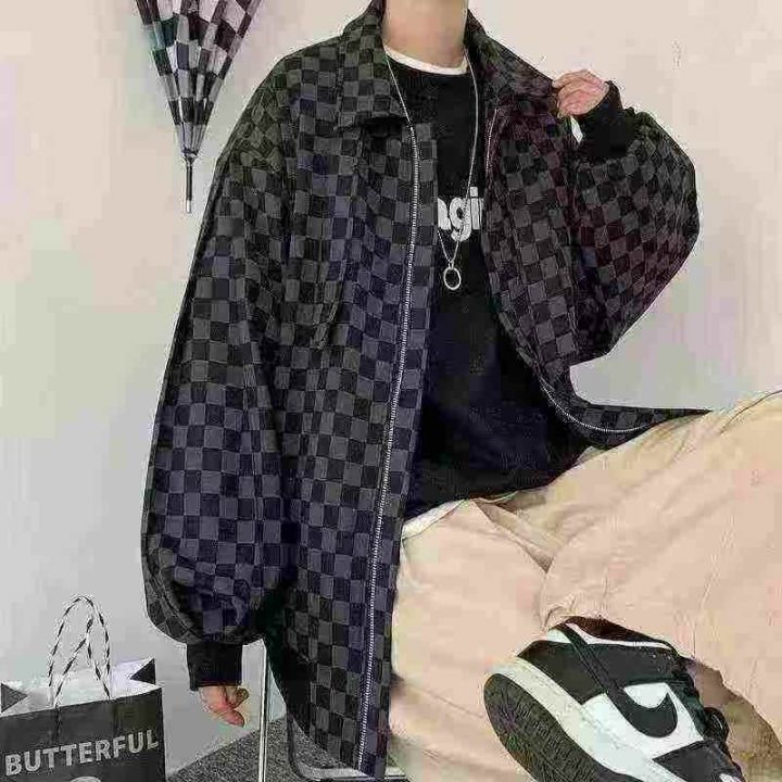 全清12.8棋盘格外套男春秋季bf潮牌宽松炸街上衣日系复...