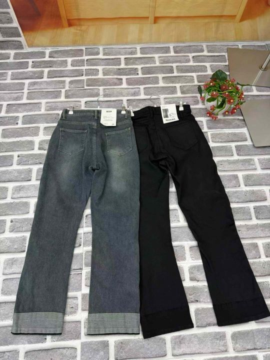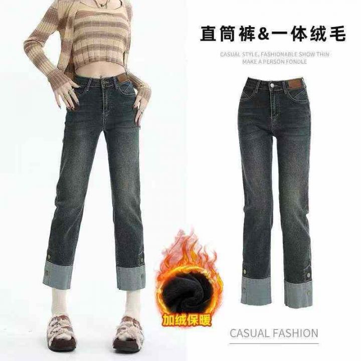 9.8分货➕1烟管牛仔裤女秋冬季秋装高腰拼接翻边复古怀...