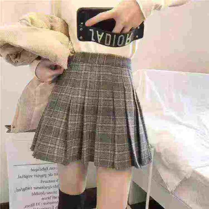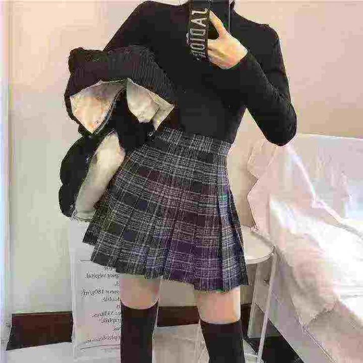 复古撞色设计感格纹毛呢百褶裙,数量79件...