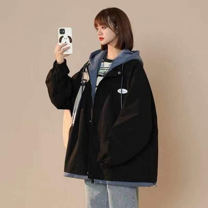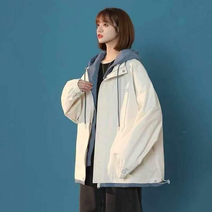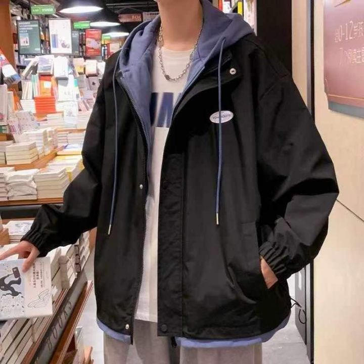 2026春秋新款假两件连帽运动夹克潮流运动男士女士宽松冲锋衣,独立包装,159件,尺码M-2XL