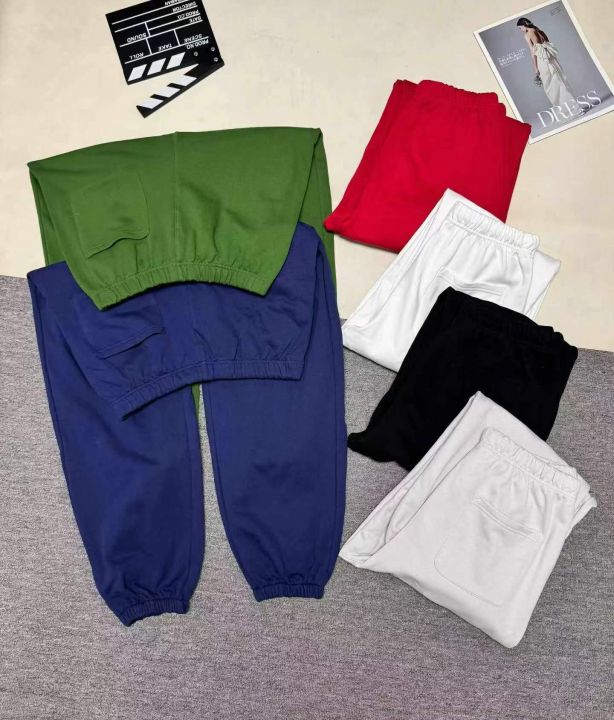 超高品质380克重磅纯棉毛圈纯色卫裤休闲裤,整款六色,后面侧面都有口袋,腰部橡筋有抽绳,束脚和阔腿比例各半,大厂货,做工精致完美,原本做大牌贴牌的货,数量900条左右,码数S-3XL,男女同款,5条一包,分货+1