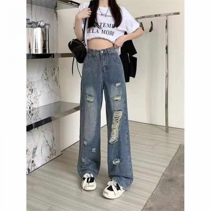 上新全清:11.8一件个性做旧破洞高腰直筒百搭牛仔裤,[爱心]95件左右,L码...