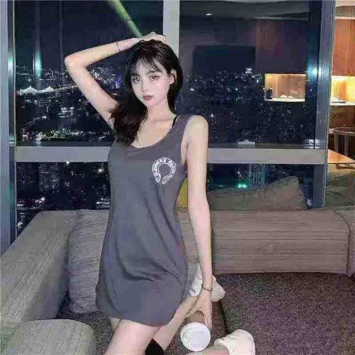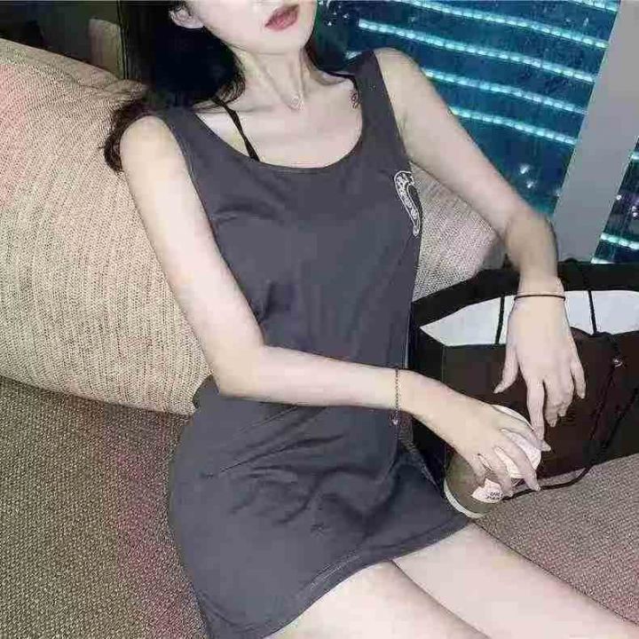150件左右,中长款无袖背心裙女夏季新款大码印花宽松休闲胖mm遮肉显瘦T恤裙,码数M-2XL。