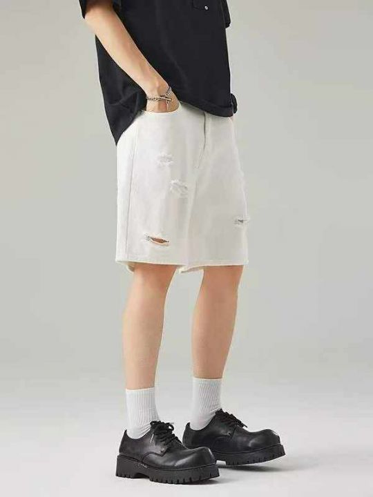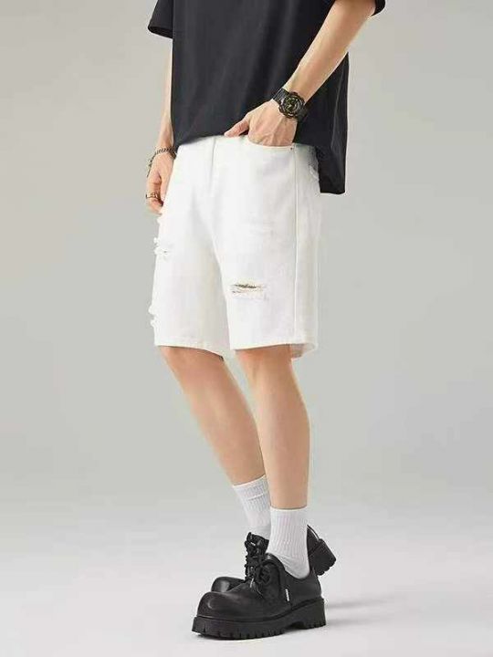 夏季新款网红复古破洞男士洗水棉牛仔短裤,独立包装带...
