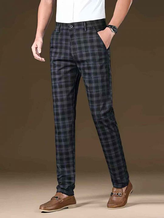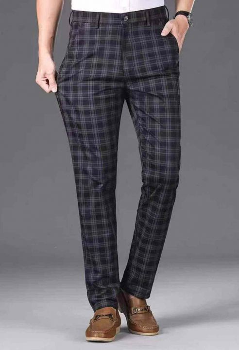 春季新款弹力男士格子直筒修身韩版潮流休闲西裤,独立...