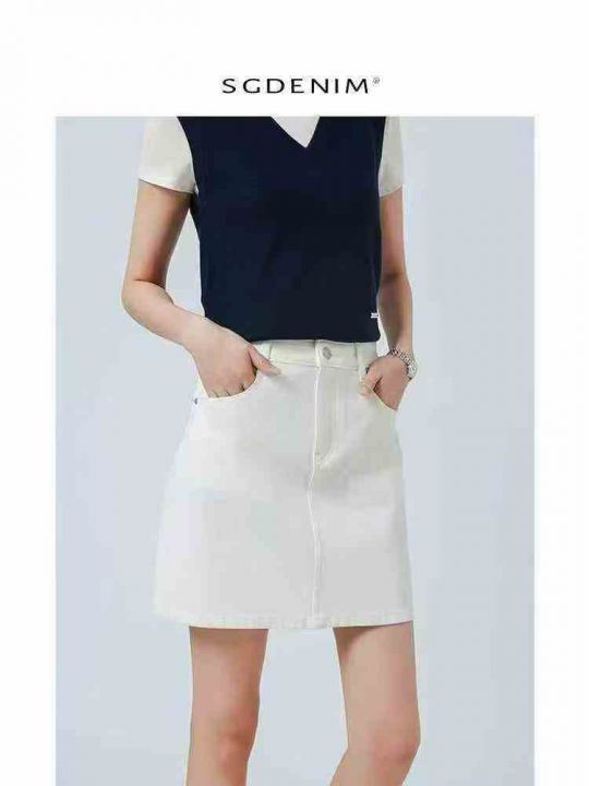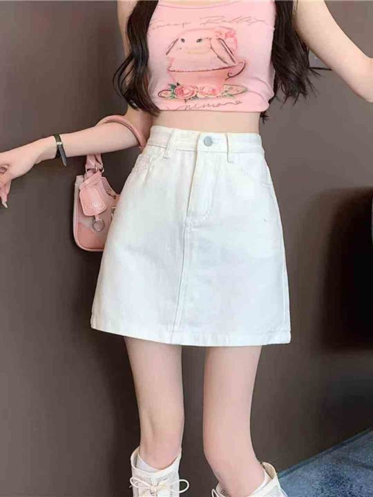 7.8清113条白色a字防走光半身裙女夏季新款小个子高腰显瘦包臀百搭牛仔短裙 内里有里布 面料柔软舒适 码数M-XL 独立包装