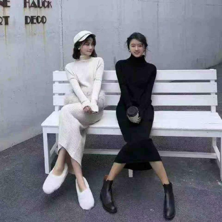 韩版高领过膝中长款针织连衣裙,[爱心]70件左右,均码,白色为主,穿70-130斤,[666]工厂原包装瑕疵