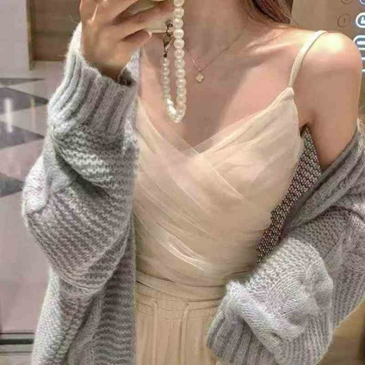 纯欲辣妹风网纱交叉拼接百搭吊带背心·单款4个色S-3XL...