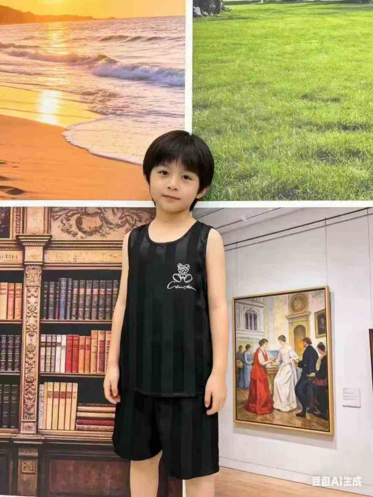童装家居服套装,仿真丝面料,面料柔软透气凉爽,数量1765套,黑白两色,8-24码(3-13岁)独立包装吊牌,分货➕1元