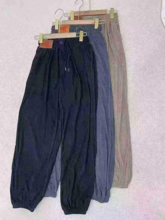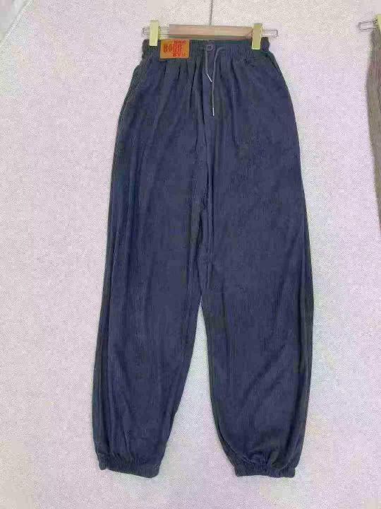 薄款灯芯绒束脚裤,竖条纹理细腻有质感,柔软垂顺不扎肤。有抽绳带口袋,独立包装,码段2-4-6(M-L-XL)