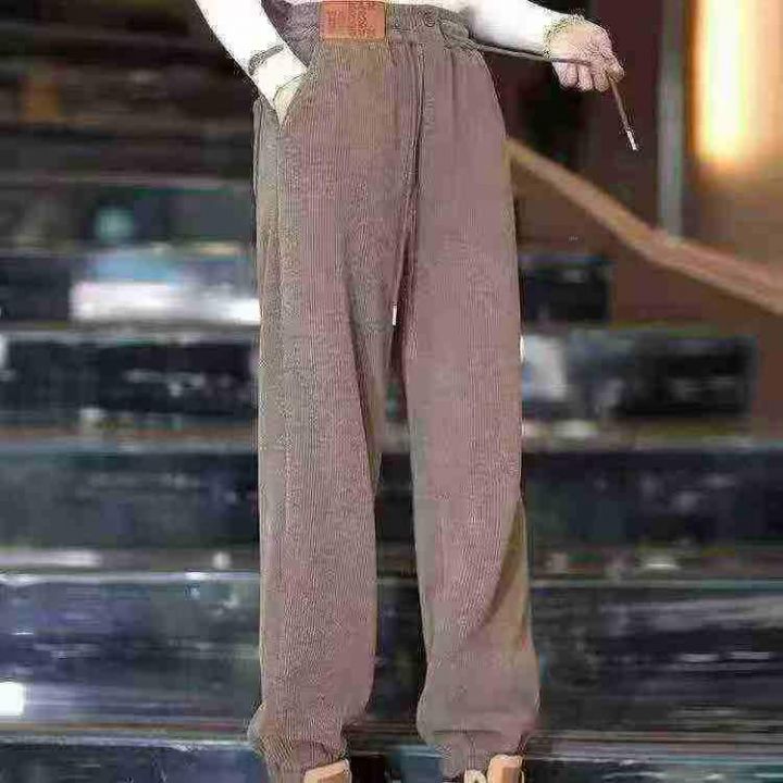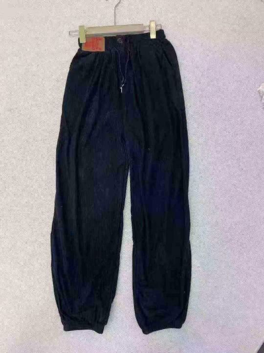 薄款灯芯绒束脚裤,竖条纹理细腻有质感,柔软垂顺不扎...