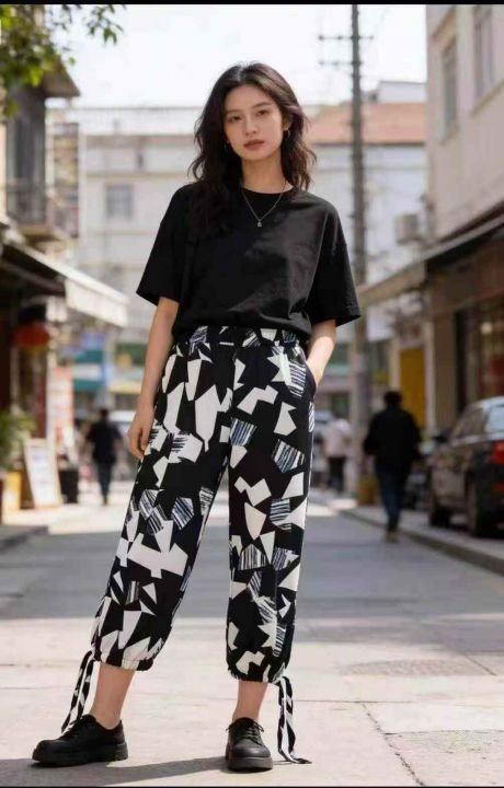 130条几何撞色休闲裤,松紧腰+裤脚抽绳设计 ,单款单色,均码 80-130斤 ,独立包装,清货4.8