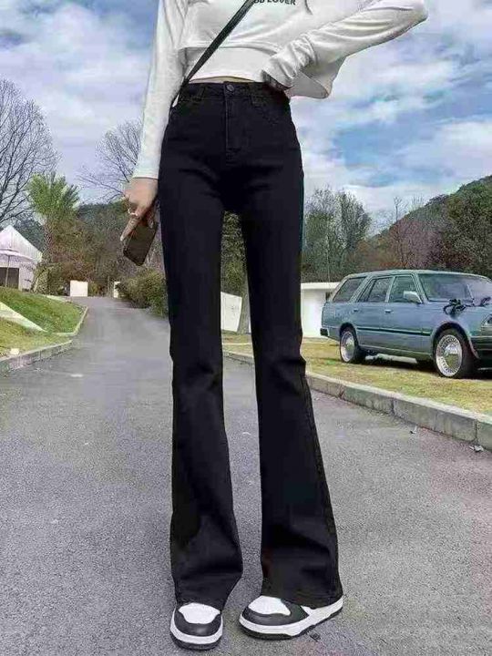 黑色弹力微喇牛仔裤春季新款高腰显瘦喇叭裤修身拖地马蹄裤子150件,独立包...