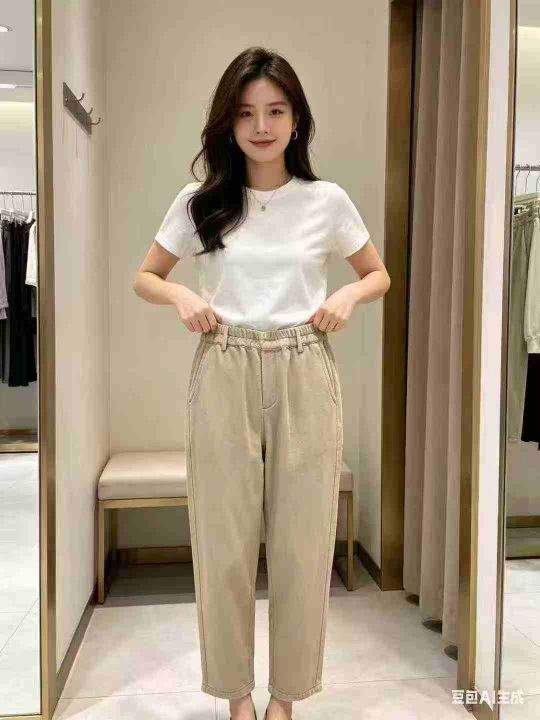 560条韩系松弛感复古卡其色百搭休闲牛仔裤,尺码S-2XL,纯棉,独立包装带吊...