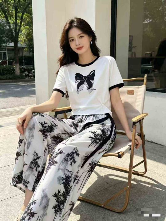 时尚洋气水墨画国风简约休闲阔腿女士套装.单款单色4个码独立包装508套全清...