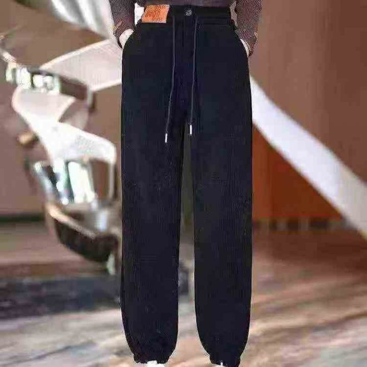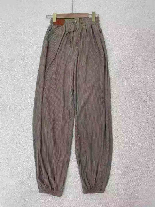 薄款灯芯绒束脚裤,竖条纹理细腻有质感,柔软垂顺不扎...