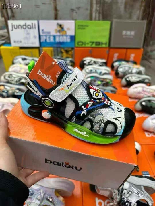 最新火爆款。品牌包头凉鞋 百乐兔 宝贝小黄鸭。包头凉鞋 乳胶垫。 大部分纽扣。(小码部分带灯)码子,26……37码。基本一首配吊牌手提袋脚撑 大厂品质。60双起批 特价 25