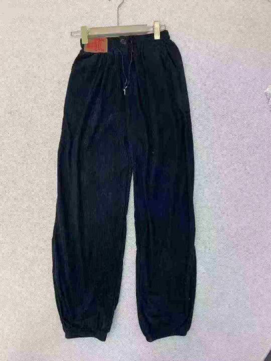 薄款灯芯绒束脚裤,竖条纹理细腻有质感,柔软垂顺不扎...