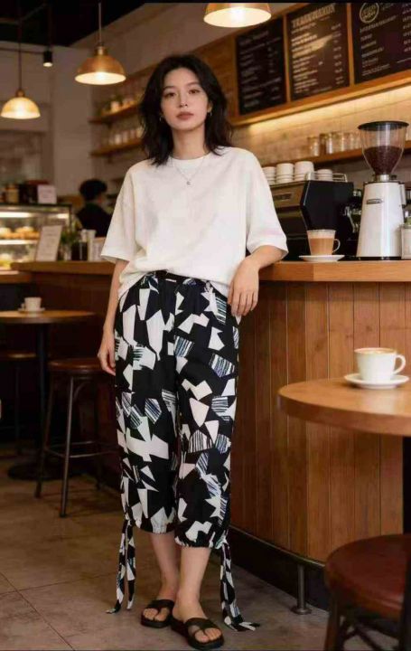 130条几何撞色休闲裤,松紧腰+裤脚抽绳设计 ,单款单色,均码 80-130斤 ,独立包装,清货4.8