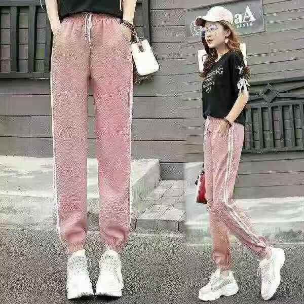 春夏季棉麻运动裤子女学生韩版原宿ins束脚 九分潮薄款宽松休闲裤,数量390件,码数m-2xl,独立包装,全清5.8元