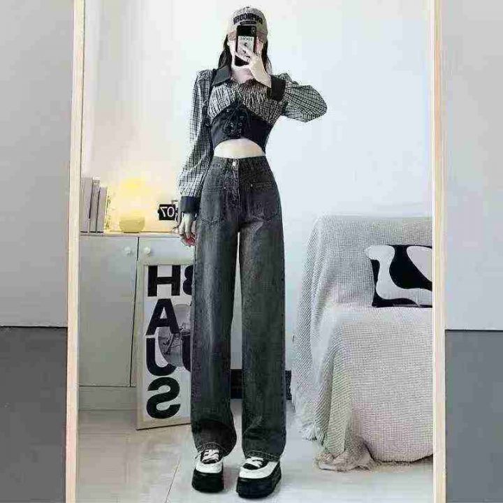 直筒牛仔裤女高腰显瘦宽松春装拖地阔腿裤子2026年新款 55件,全清12.8元,码数:S M L,正品独立包装,每条带有原吊牌