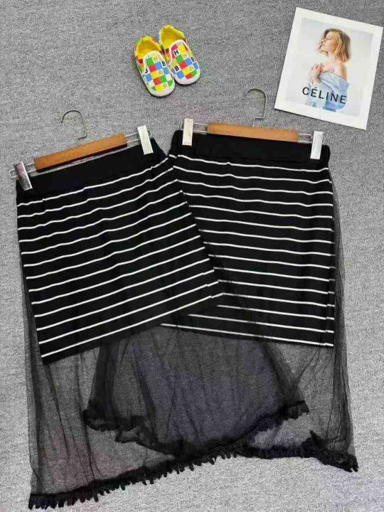 夏季休闲新款高腰松紧半身裙显瘦条纹网纱裙,独立包装...