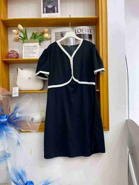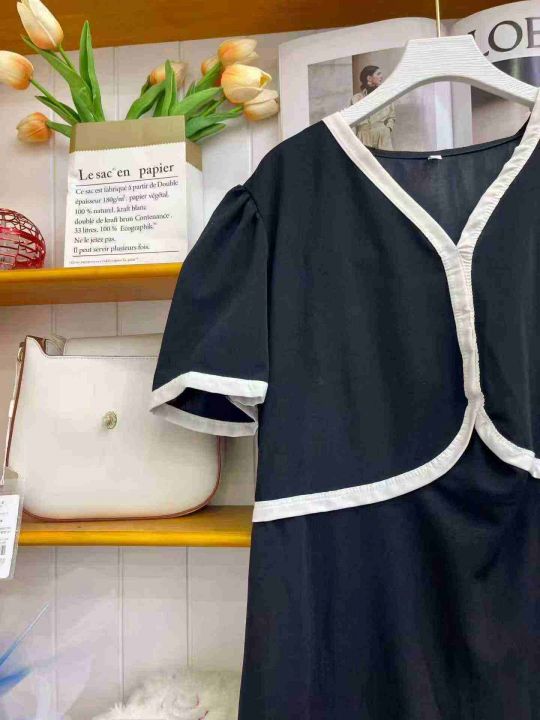① 小香风名媛拼接v领假两件宽松显瘦连衣裙!独立包装,码数S-2XL,数量100件左右,全清6.8元