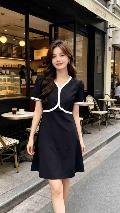 ① 小香风名媛拼接v领假两件宽松显瘦连衣裙!独立包装...