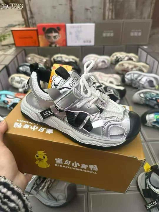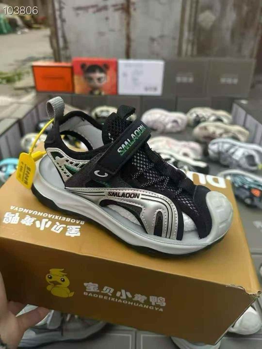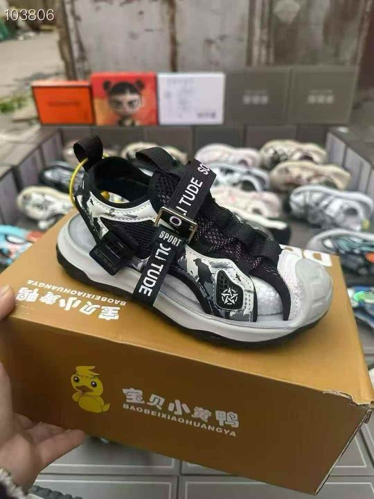最新火爆款。品牌 奔跑熊。宝贝小黄鸭。包头凉鞋 乳胶垫。 大部分纽扣。码子,32……42码 一首配吊牌手提袋脚撑 大厂品质。60双起批 特价 25