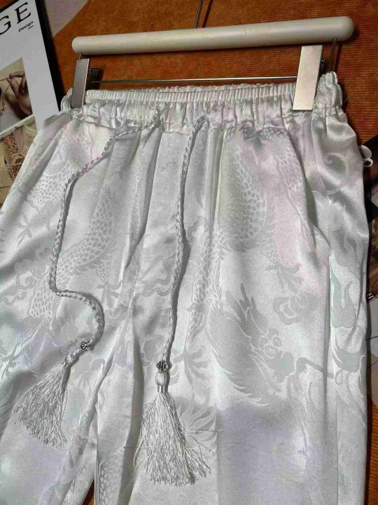 中国风龙纹提花冰丝长裤男款 208条,全清6.8元,正品独立包装,黑白两个色,码数~M到3XL, 2026年新款中式国风冰丝裤子男生垂感提花缎面休闲裤高级感白色直筒长裤