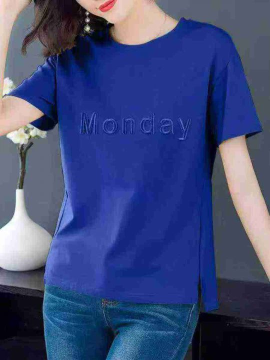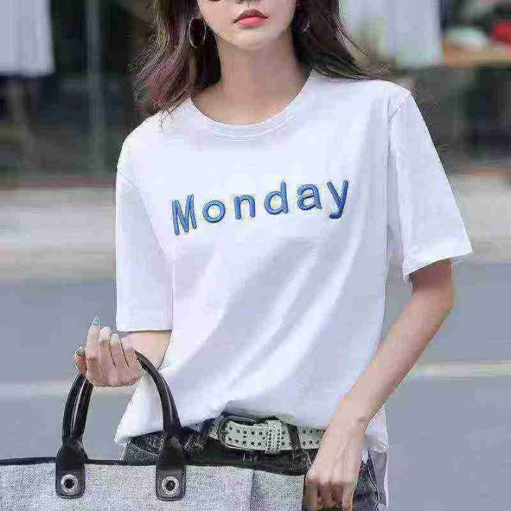 女装宽松刺绣字母时尚百搭纯棉短袖 数量846件 码数M--3XL 五个颜色 侧边开叉 独立包装 货品干净整齐