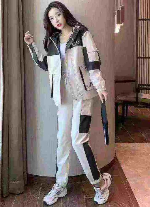 天猫在售款24套高品质春秋款韩版潮流修身休闲冲锋衣工装套装两件套,码数L-3XL,内里双层带里布,单款单色,独立包装