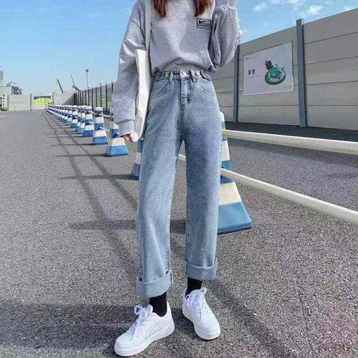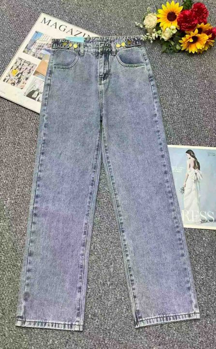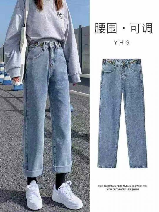 春季新款复古网红可调节直筒牛仔裤,独立包装带腰卡,...