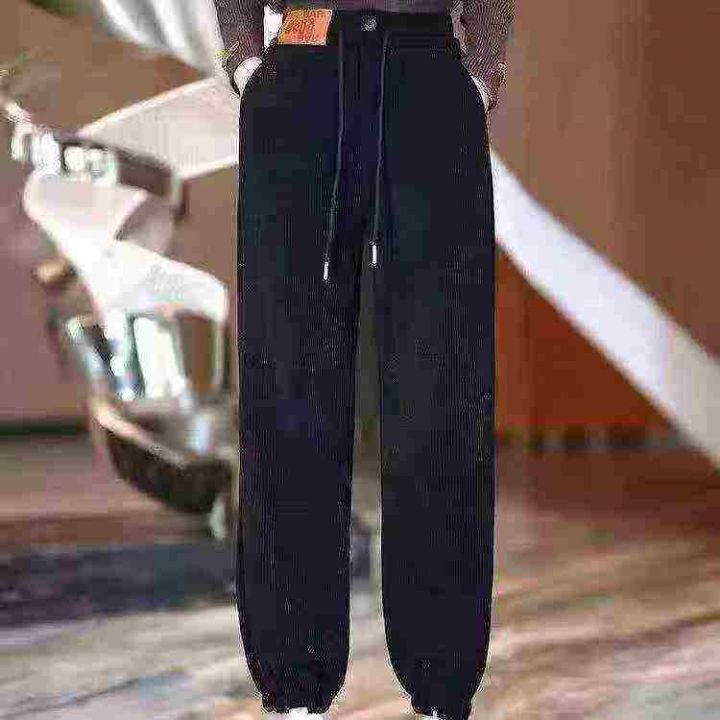 薄款灯芯绒束脚裤,竖条纹理细腻有质感,柔软垂顺不扎...