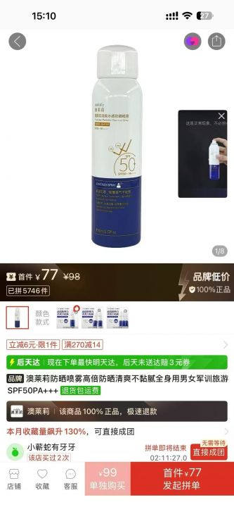 澳莱莉清爽水感防晒喷雾数量3300日期27年4月箱规24...