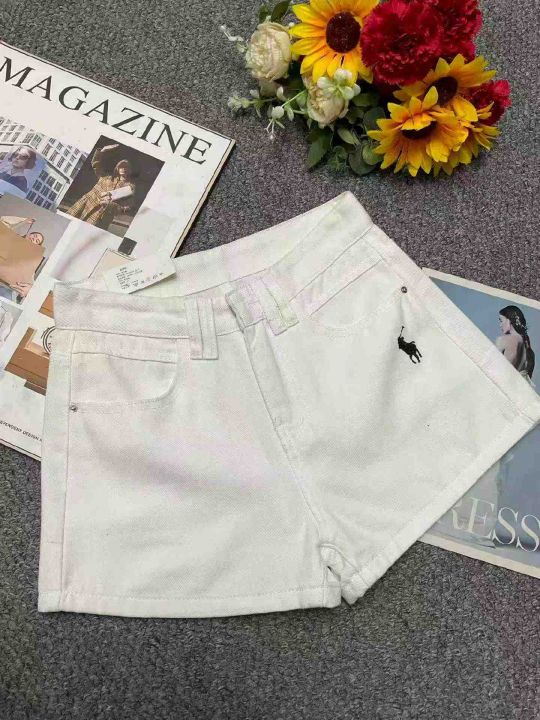 夏季新款小马刺绣复古高腰显瘦洗水棉牛仔短裤,独立包...
