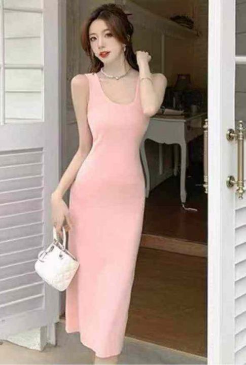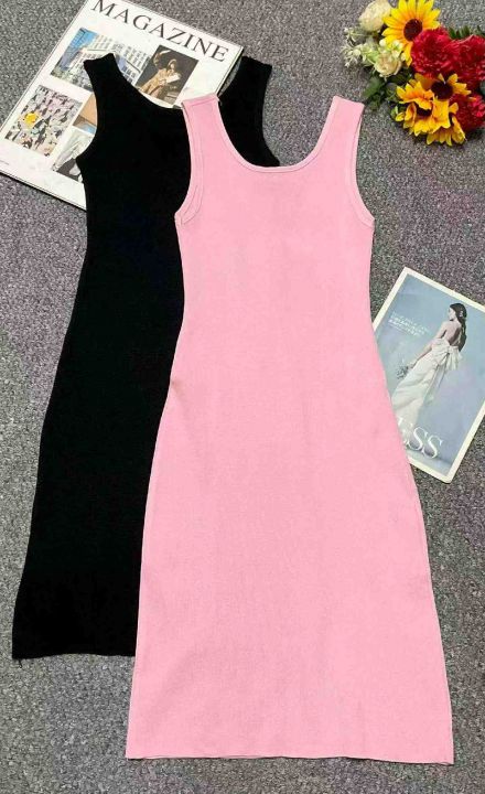 夏季新款净版简约弹力修身显瘦针织背心连衣裙,100件...
