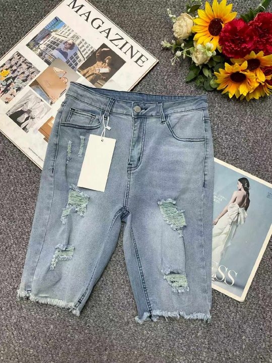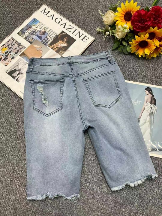 夏季新款品牌外贸原单美式高弹力牛仔中裤,独立包装带...