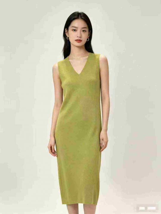 200件左右2026夏季新款法式温柔风约高级感牛油果绿针织无袖中长款背心裙连...