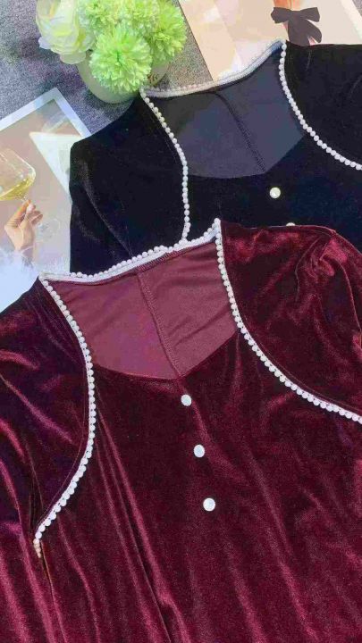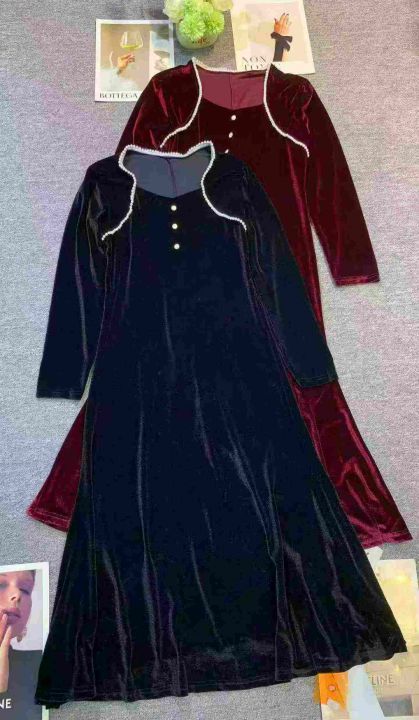 复古轻奢金丝绒方领设计感连衣裙,[爱心]100件左右,单款两个色 ,码数S-4XL,穿80-150斤,万佳档口货,原包装️无瑕疵,[666]实体店品质