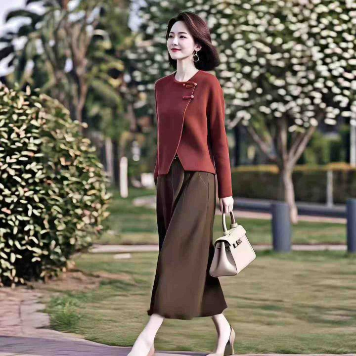 [月亮]:国风气质不规则上衣半身裙套装