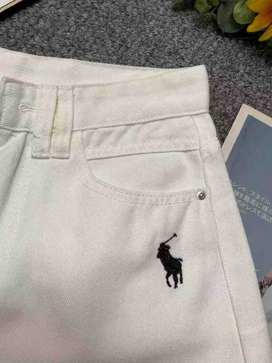 夏季新款小马刺绣复古高腰显瘦洗水棉牛仔短裤,独立包...