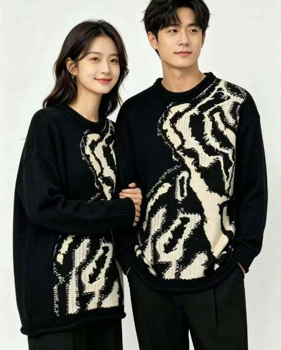 捡漏款,秋冬新款韩系宽松撞色设计款植绒男女同款设计款套头毛衣,独立包装...