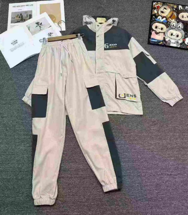 天猫在售款24套高品质春秋款韩版潮流修身休闲冲锋衣工装套装两件套,码数L-3XL,内里双层带里布,单款单色,独立包装